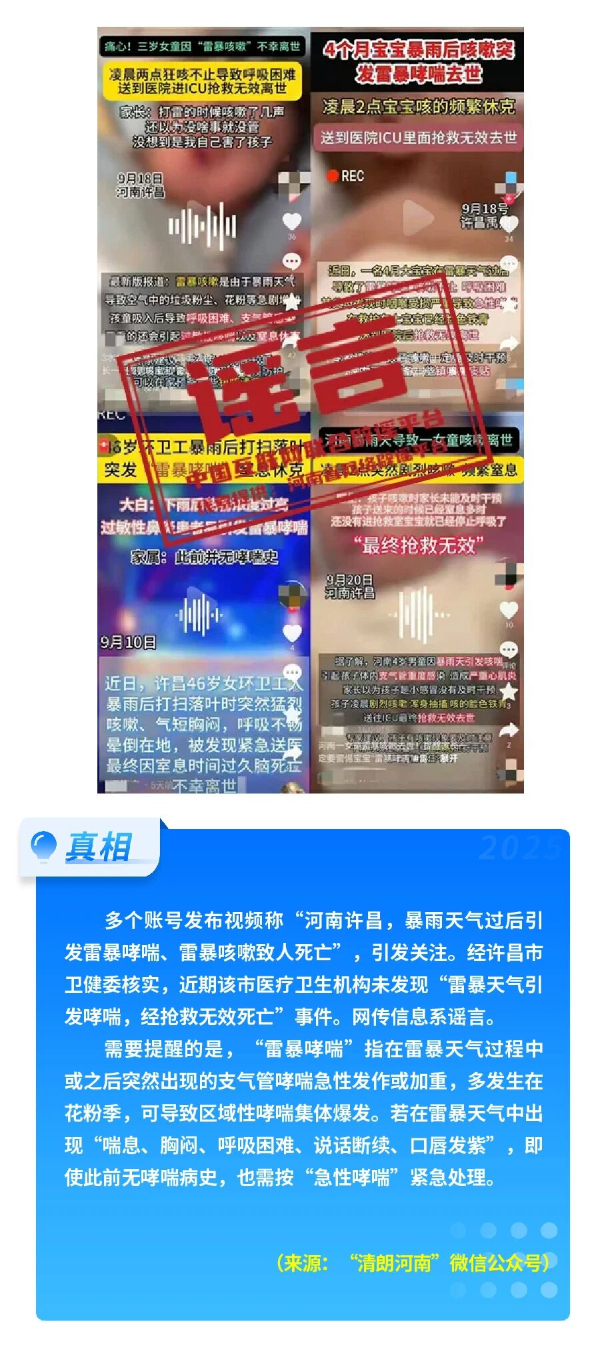 河南许昌有人因雷暴哮喘死亡?