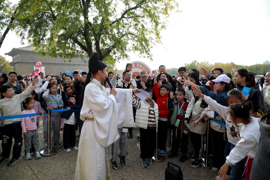 表演互动区同样精彩纷呈。活动特别邀请到西安本土顶流IP—西安城墙“金吾卫”、大唐不夜城“李白”,聚焦“如何辨别网络谣言”“维护自身合法权益”“践行文明上网规范”等内容与群众开展零距离互动、有奖问答。上午、下午各安排了两场互动知识问答活动,答对问题的群众可获得精美文创奖品,真正让普法活动既“有意义”又“有意思”。