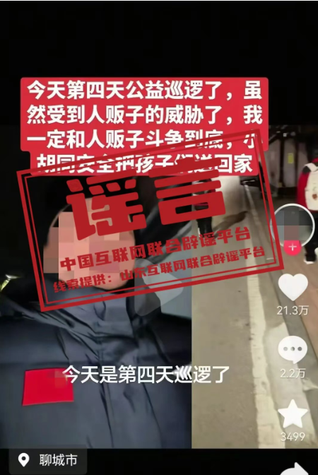 辟谣:“山东聊城一男子进行公益巡逻时被人贩子威胁”系谣言