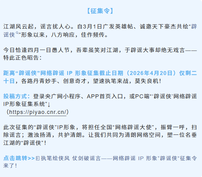 辟谣侠IP征集截稿在即!快来提交你的创意吧