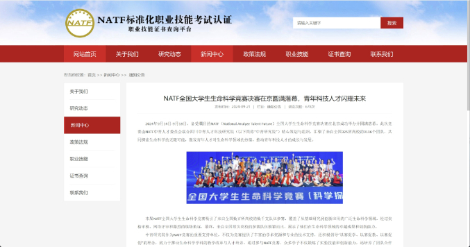 “NATF”网站上对“NATF全国大学生生命科学竞赛决赛”的报道。