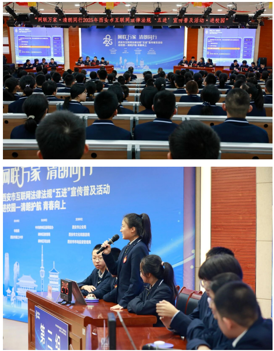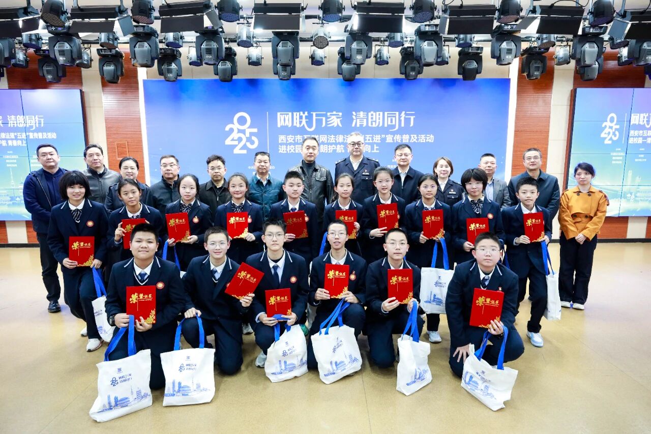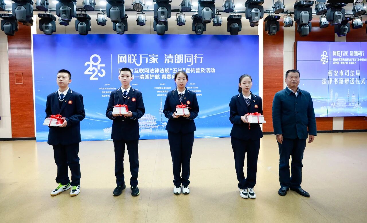 此次“进校园”活动是2025年西安市互联网法律法规“五进”宣传普及活动的重要一站,通过教育动员、书籍赠予、知识竞赛、互动问答以及校园普法展览等多元形式,让法治种子在校园生根发芽,助力青少年强化网络法治意识。