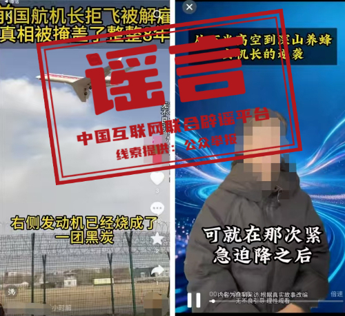 近日,个别自媒体账号陆续发布“从万米高空到深山养蜂 女机长的逆袭”“前国航机长拒飞被解雇 真相被掩盖了整整8年”等视频内容,视频中当事人声称为国航前飞行员,因航空不安全事件被国航解聘后开始养蜂卖蜜。