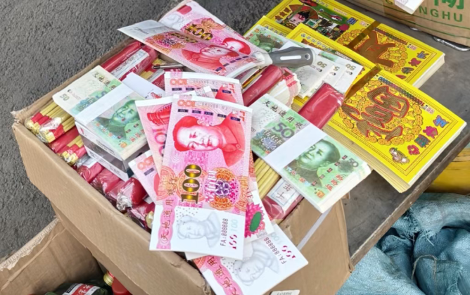 此次公布的案例显示,2025年4月,江苏省淮安市金湖县某殡葬用品店销售“人民币版”冥币。当地相关部门开展联合执法,依法对冥币批发商王某某处以警告、罚款4500元,并没收全部违法所得;对印刷商严某某处以罚款52000元,并没收全部违法所得,将涉案冥币全部予以销毁。
